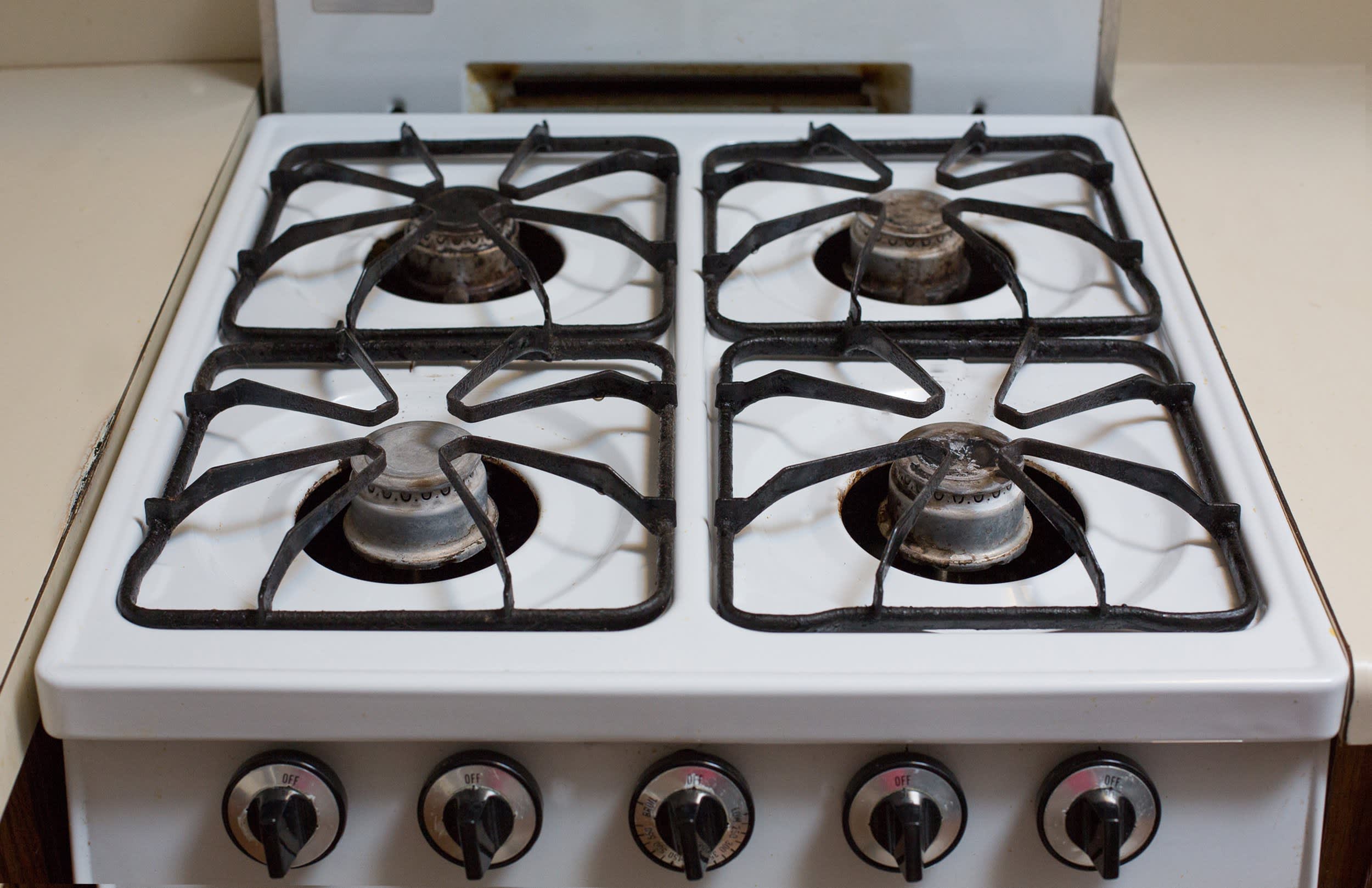 Wear a mask to protect yourself from the gas. I only used 1 cleaner and it made this greasy. If you want to make them look like new again, some really hot or boiling water can help cut through the grossness and make the cleaning chore easier. It's very important to make sure the stove is completely off and cool to the touch before you start cleaning. However, this does not always happen.